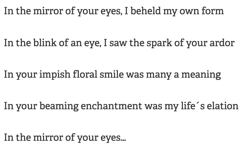 In the mirror of your eyes, I beheld my own form