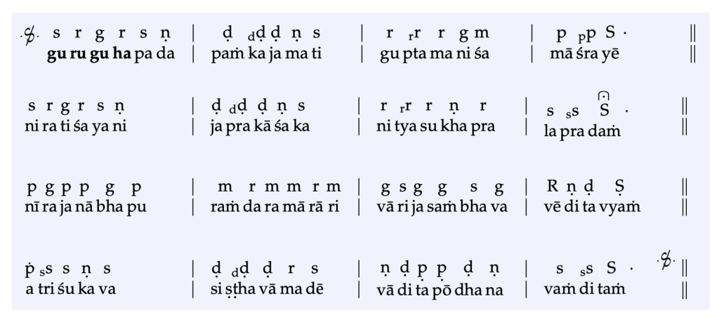 Nottuswaram: Guruguha Pada Pankaja March 5, 2024 Ranganatha Sitaram Nottuswarams Leave a comment COMPOSER: Mutthuswamy Deekshitar RAGA: Shankarabharanam, TALA: Tisram SWARAS & SAHITHYA: Share this: Click to share on X (Opens in new window) X Click to share on Facebook (Opens in new window) Facebook More Click to share on LinkedIn (Opens in new window) LinkedIn Click to share on Pinterest (Opens in new window) Pinterest Like Loading... Related